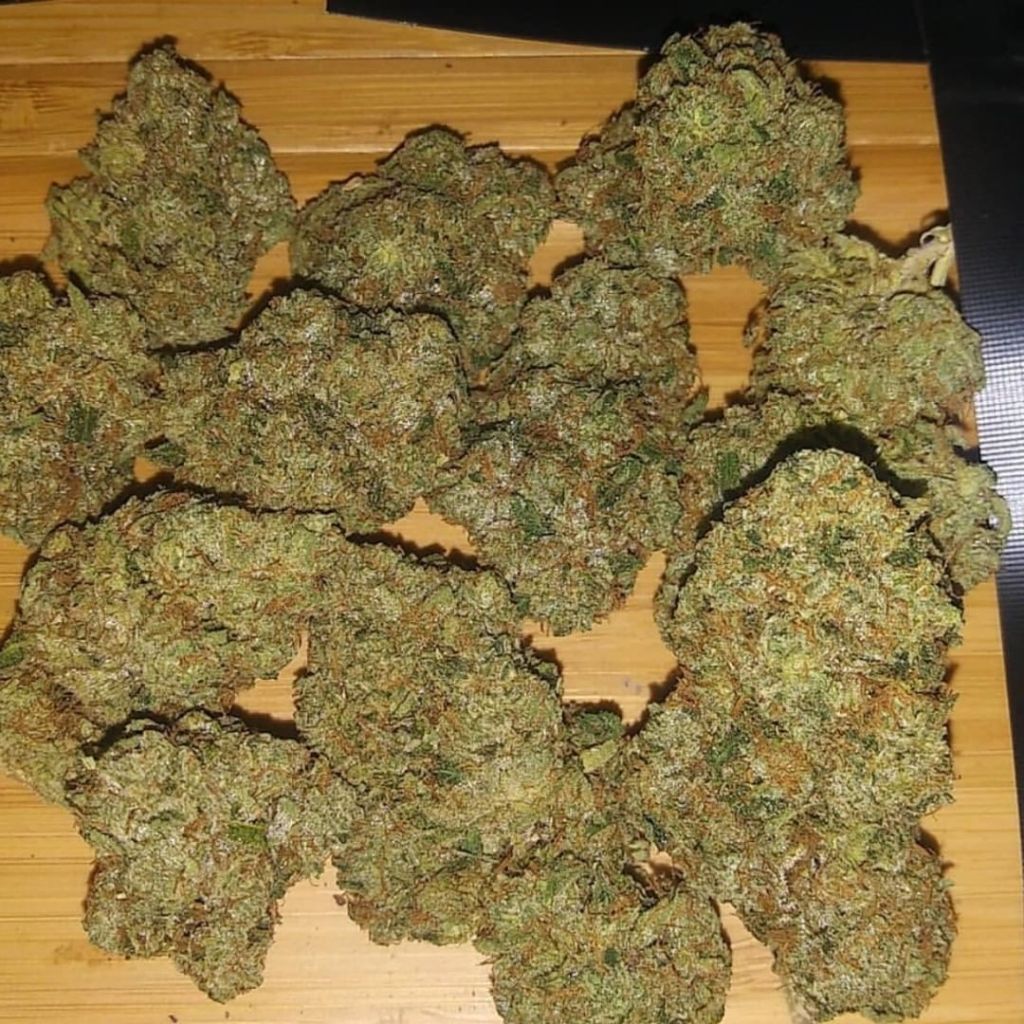 Khalifa Kush, also known more commonly as “Wiz Khalifa OG” among the cannabis community, is an indica dominant hybrid (80% indica/20% sativa) strain created as a descendant of the insanely popular classic strain OG Kush. The exact genetics of this strain are kept under lock and key, as it was bred specifically for Wiz himself by a dispensary in San Jose, CA. This dank bud boasts a powerful 24-27% THC level and insanely active and stimulating effects. This perfect wake-and-bake 6strain hits you hard with an intense cerebral activity that leaves you energetic and uplifted, immediately eliminating any feelings of fatigue or pain. This is accompanied by a relaxing mellow body buzz that leaves you completely relaxed in both mind and body without any feelings of sedation. Because of these powerful effects, Khalifa Kush is perfect for treating chronic fatigue, chronic stress or anxiety, mild to moderate cases of depression, and muscle spasms. Khalifa Kush buds have small to medium-sized super tight forest green leaf-shaped nugs with a thick layer of fiery orange hairs and visible droplets of sticky resin. These nugs have a classic OG aroma of sour lemon pine with a taste of sweet and sour lemony pine with an earthy aftertaste.